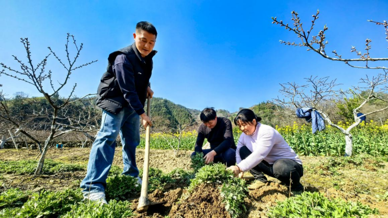春日的田畴上,一株株菊花苗扎根沃土,一根根桃树枝焕发新绿,村民们忙碌的身影里满是对丰收的期盼,驻村队员们的实干付出中承载着乡村振兴的希望。这既是一幅生机盎然的春耕图景,更是驻村工作队扎根基层、服务“三农”的生动写照。
