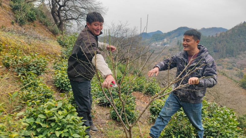 为了让桃树打理工作落到实处,驻村工作队分组解决部分村民修剪技术不熟练的问题,队员们一对一、手把手教学,结合口诀拆解每一个步骤,从修剪工具的使用方法到修剪后的养护注意事项,细致讲解、耐心指导,直到村民完全掌握。“你看,按口诀说的,这病枯枝要疏掉,过长果枝要短截,这样养分才能集中供给结果枝。”村民们相互指导、互帮互助,很快就掌握了修剪要领。同时,工作队还组织村民开展清园工作,清除果园内的杂草、落叶、枯枝,大家分工协作,效率大大提高。